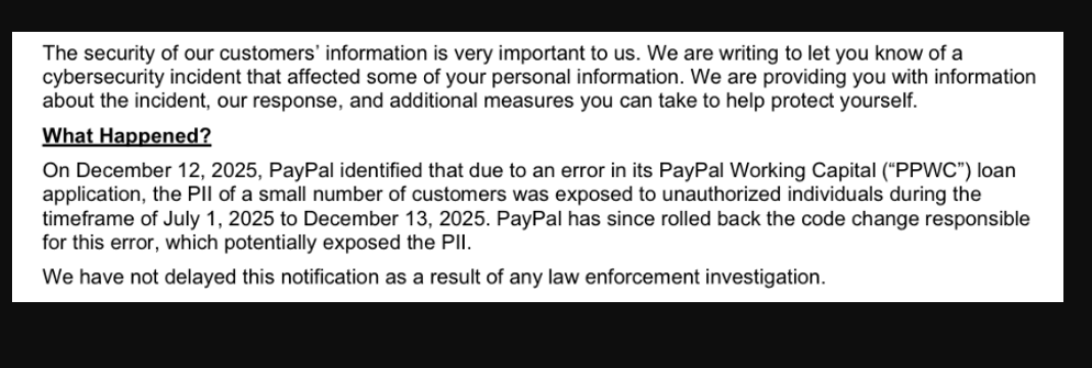 ABD merkezli ekonomi dergisi Forbes’ta yer alan habere göre saldırı, platformun belirli bir bölümündeki teknik bir hatadan kaynaklandı. PayPal sözcüsü, ihlalin şirketin ana ödeme altyapısını değil, PPWC kredi başvuru sistemini etkilediğini belirtti.